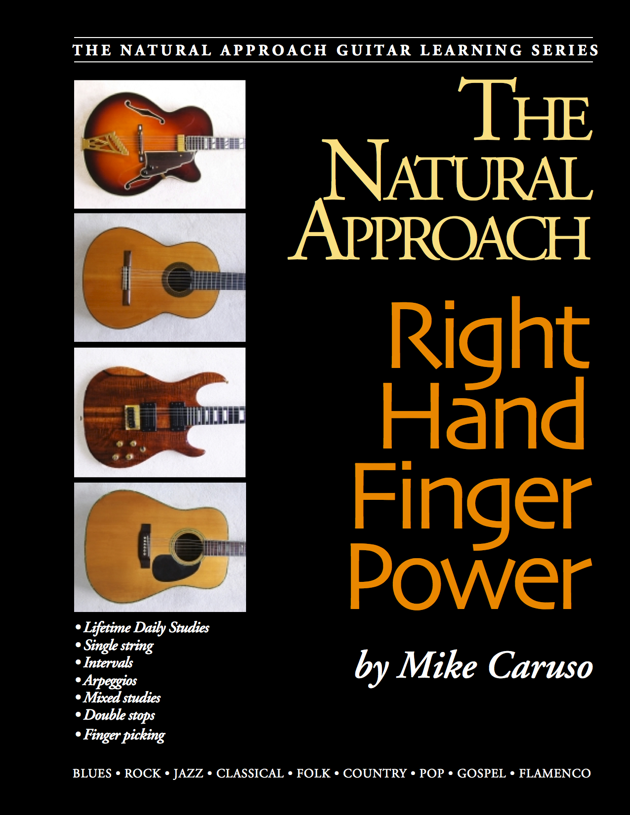 Over 500 pages of unique and original exercises will give you awesome right hand power! Perfect for finger players, thumbpick players, and those who use a combination of pick-with-fingers. Perfect for all styles of playing: Blues, Rock, Jazz, Classical, Folk, Country, Pop, Gospel, Flamenco, and Ethnic. Absolutely the only right hand technique book you will ever need!